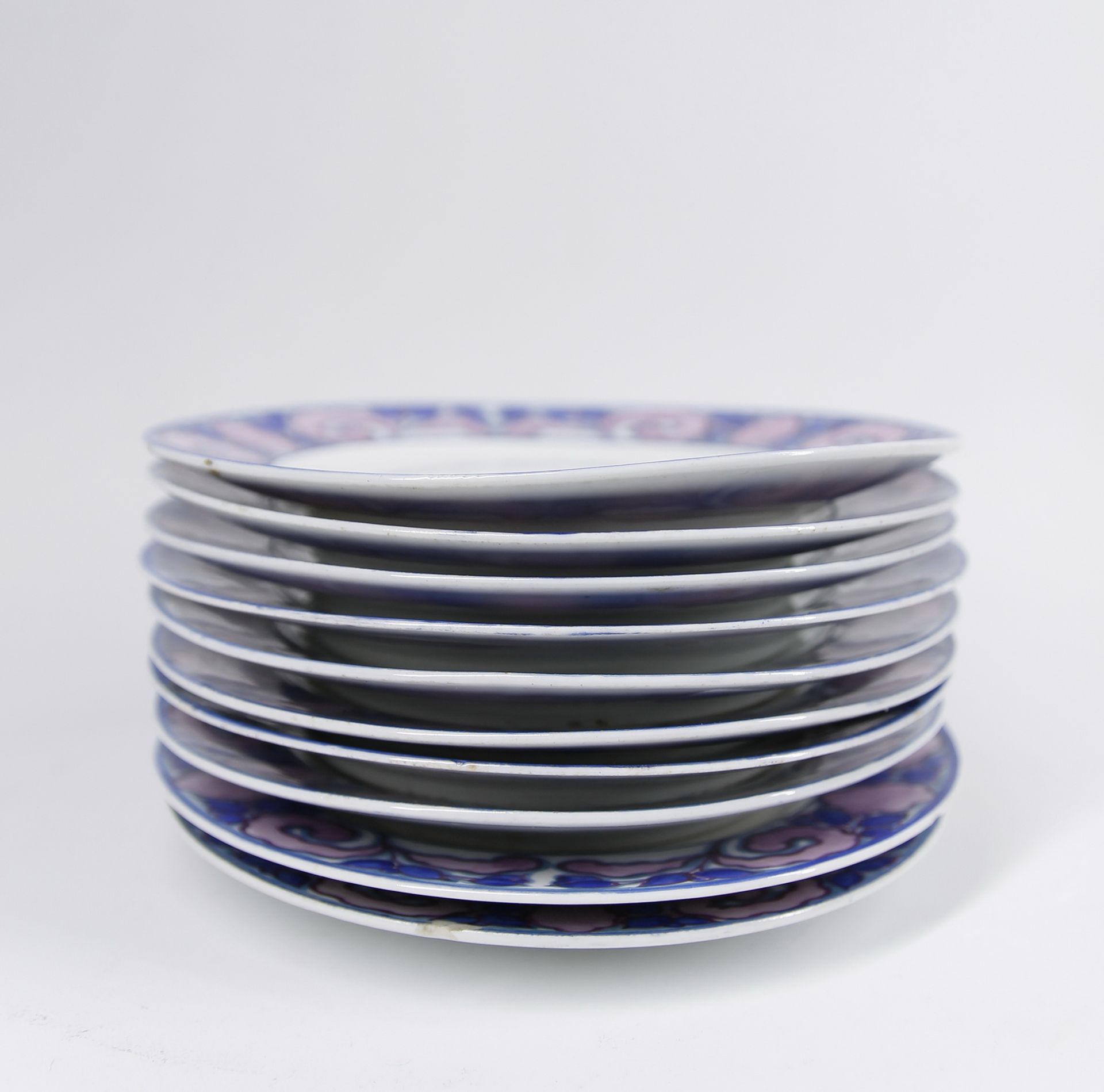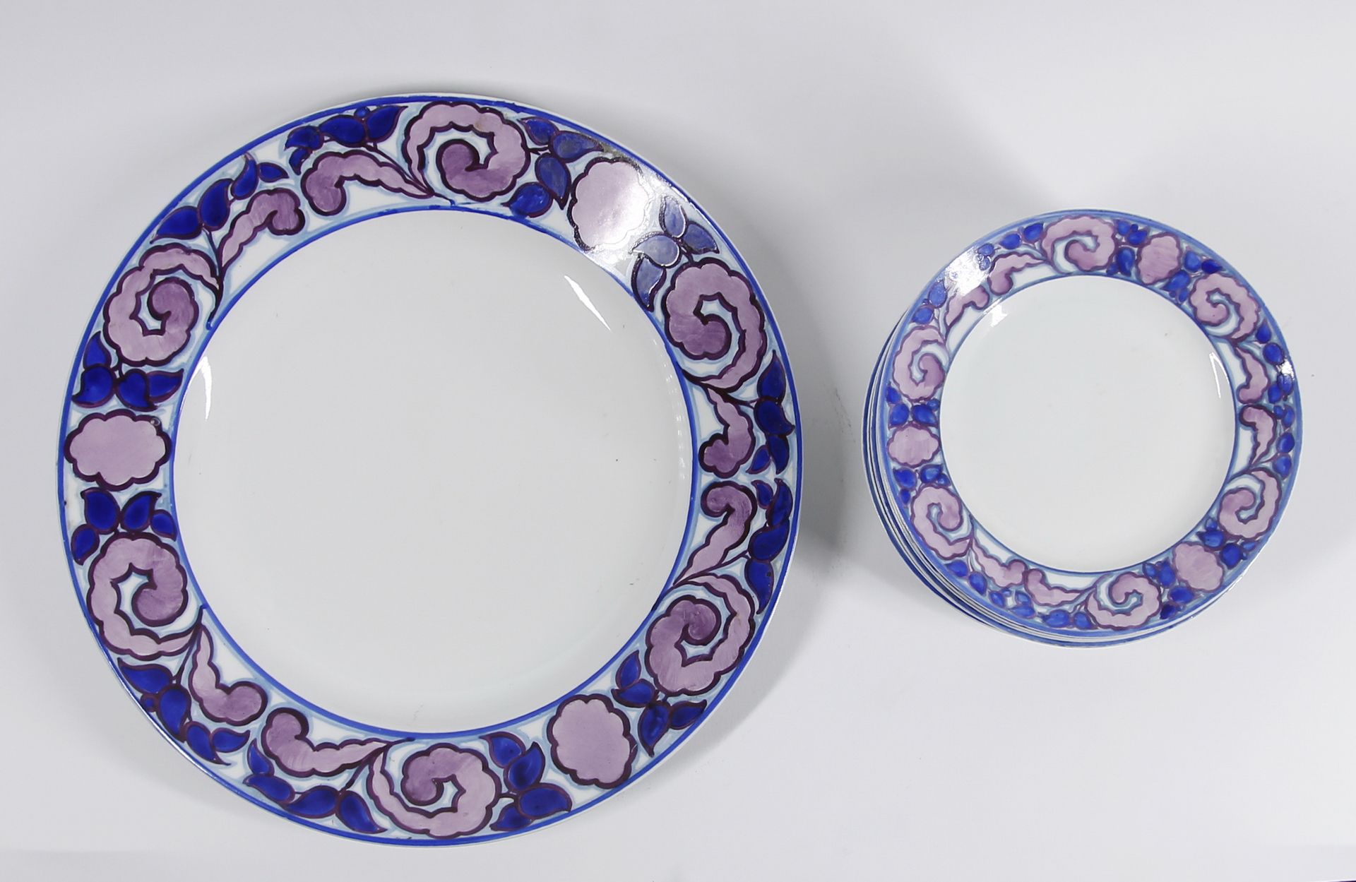 3. / Borszéky Frigyes (1880 - 1955) / Süteményes készlet- 1 nagy tál, 10 kistányér