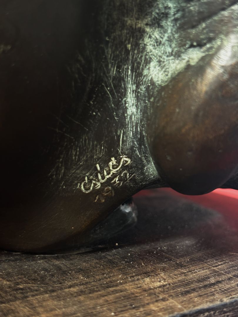 bronz, fa kubuson / 23 x 17 x 22