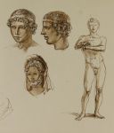 10 mű, kréta, tus, ceruzarajzok /