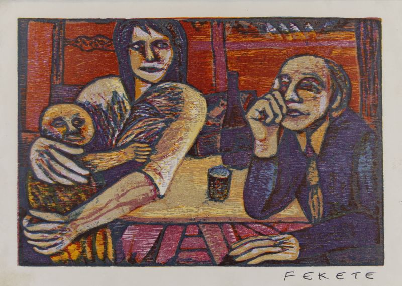 színes fametszet, szignált / 17 x 25