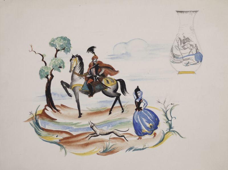 59. / Fiora (Fischer) Margit (1898 - 1984) / A lovag - vázára rajz vázlat, 1925 körül