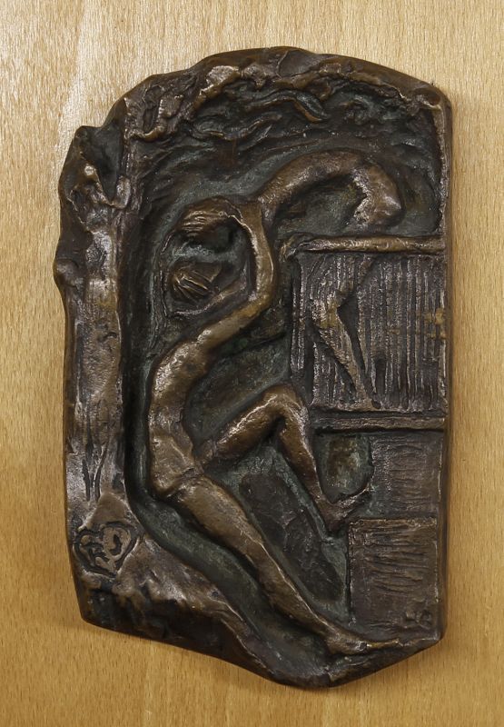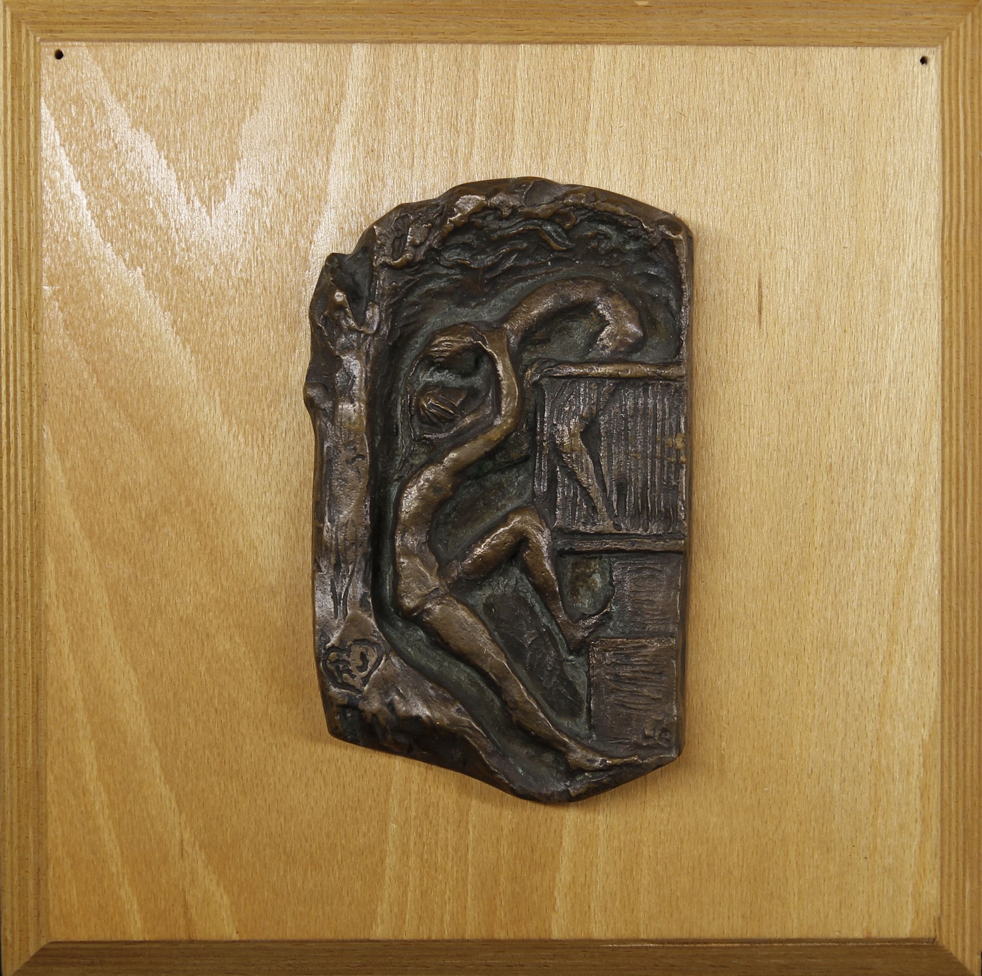 bronz, fára applikálva, falra akasztható / 13,5 x 8,5 cm