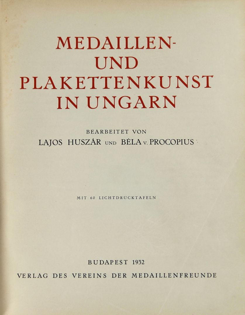 17. / Könyv tétel () / Huszár Lajos - Procopius Béla: Medaillen und Plakettenkunst in Ungarn, Budapest 1932