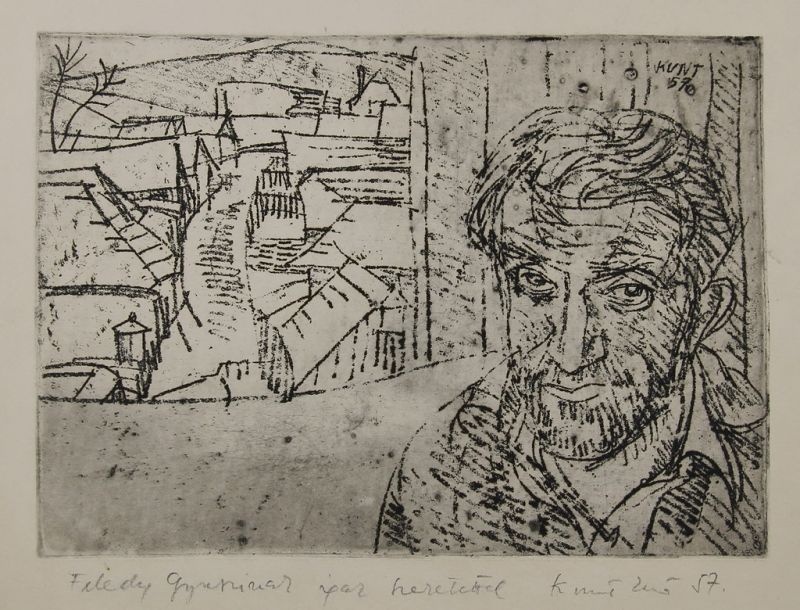 rézkarc, szignált, Feledy Gyulának ajánlva / 19,5 x 27,5 cm