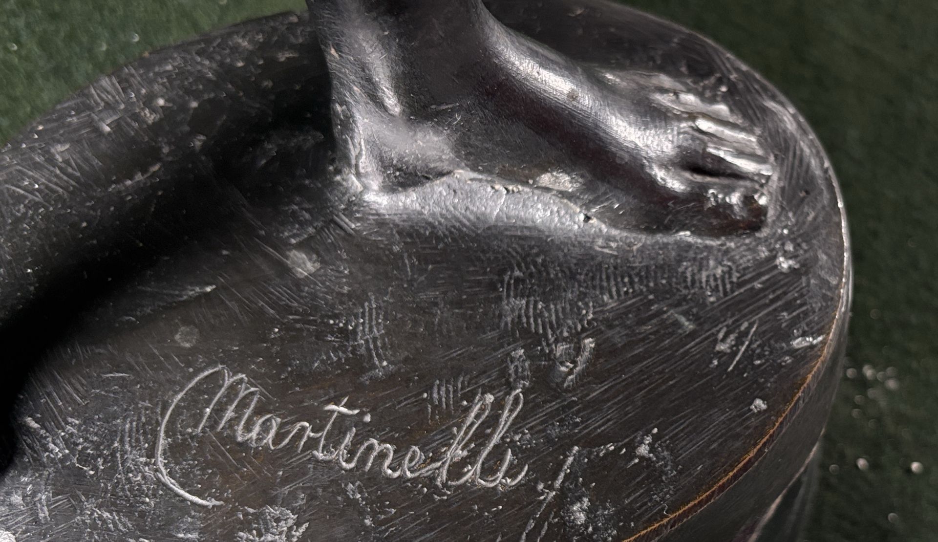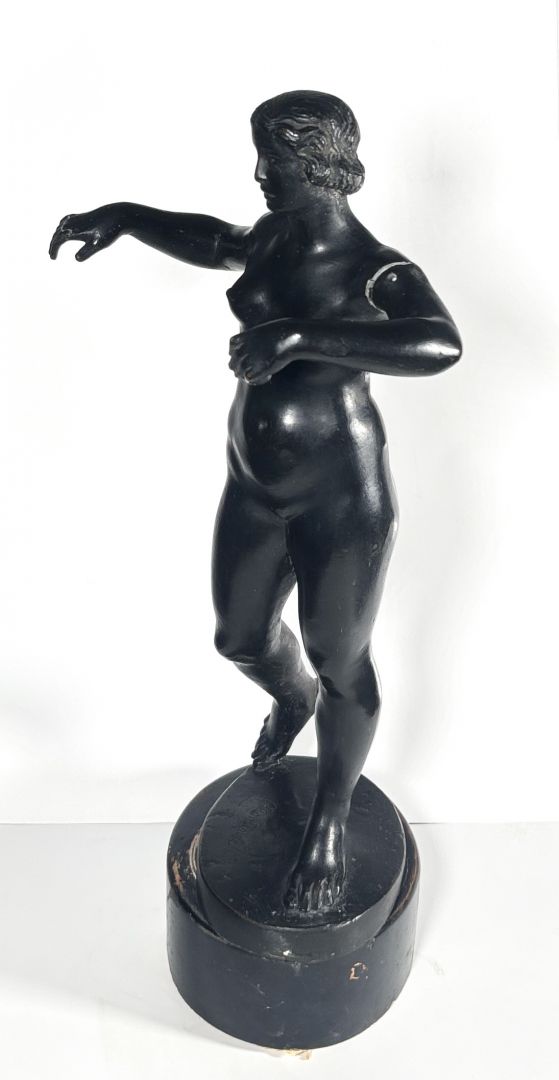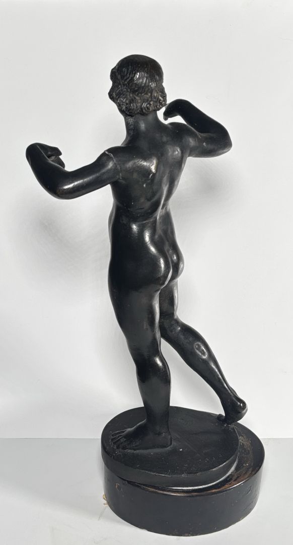 bronz (több helyen sérült) fa kubuson / 46,5 x 18 x 11