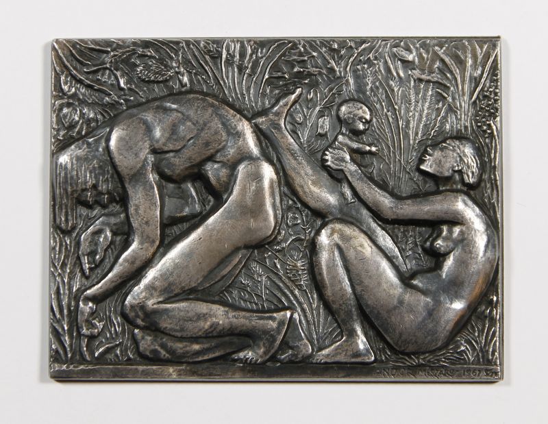 öntött bronz, ezüstözve / 75 x 100 mm