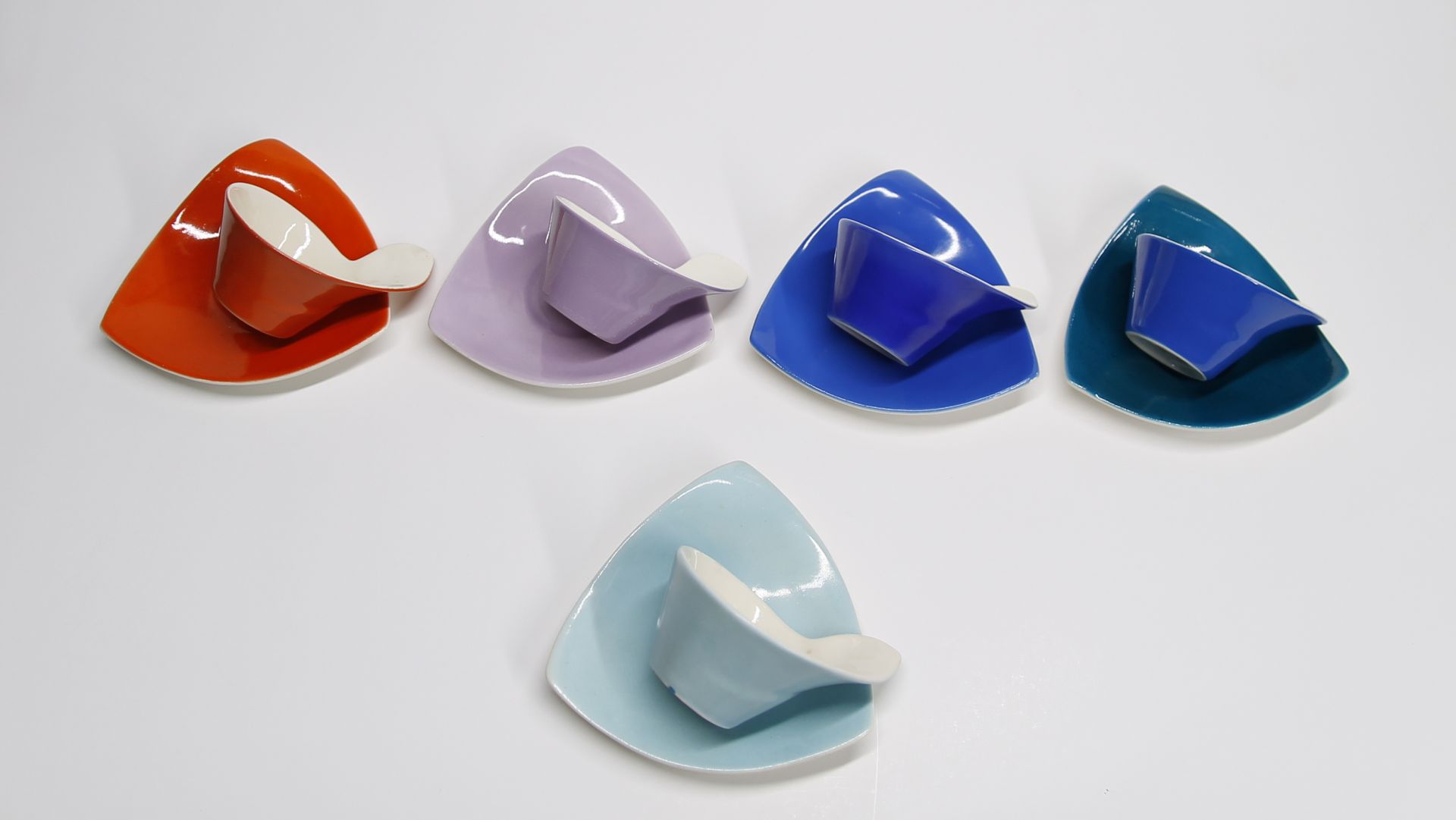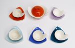 64. / Narancs cukortartó és 5 csésze aljjal () / narancs, türkisz,kék, sötétkék,12 db-os