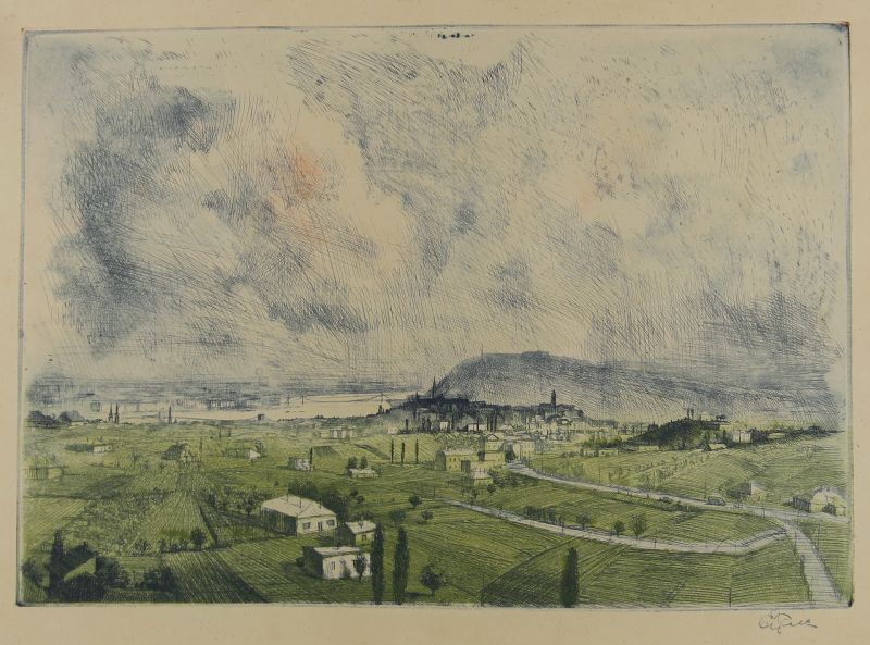 rézkarc, akvarell, szignált / 27,5 x 38,5
