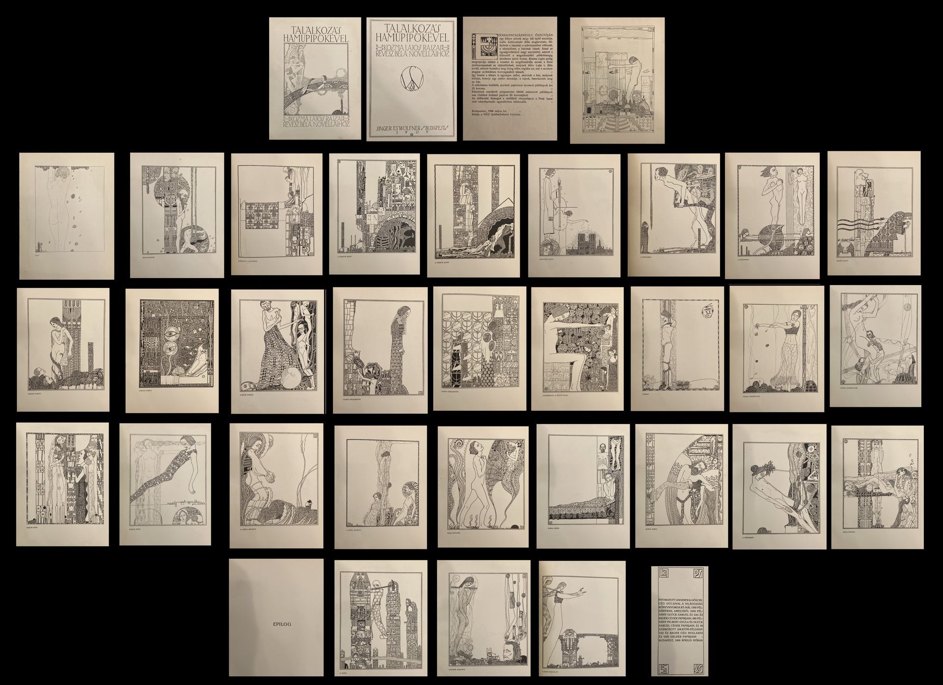 A kemény kötésbe fűzött lapok között 32 lap Kozma Lajos cinkográfia - Találkozás Hamupipőkével