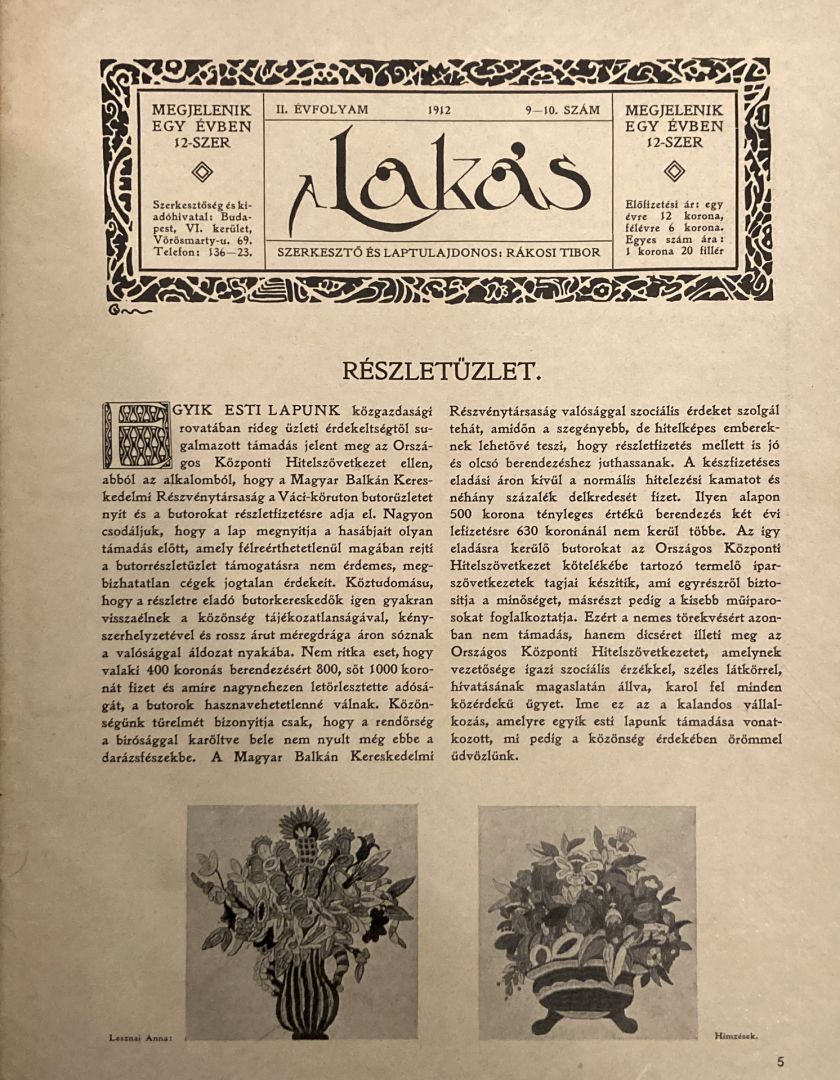 kemény kötésbe kötve (Belső Decorátió elnevezéssel) : Innen Decoration német nyelvű A lakás és a Magyar Iparművészet magyar nyelvű lapszámai 1910-es évekig