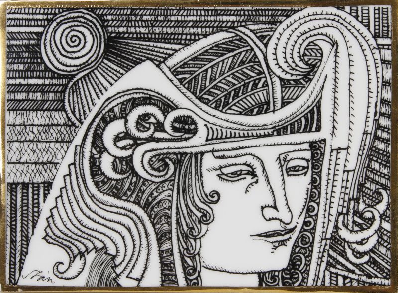 Hollóházi porcelánon szitanyomat / 8,7 x 12