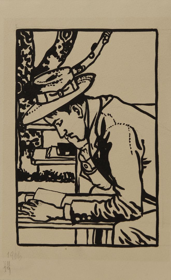 Kalapos ifjú olvas, 1906