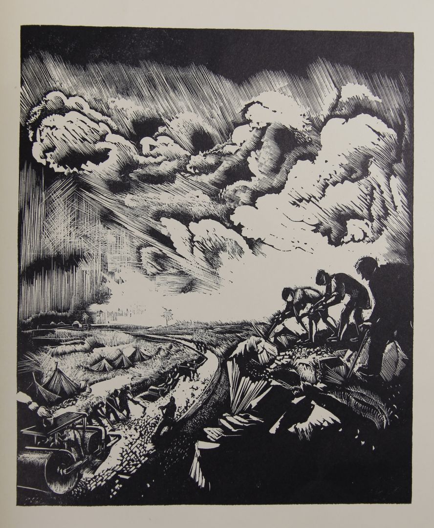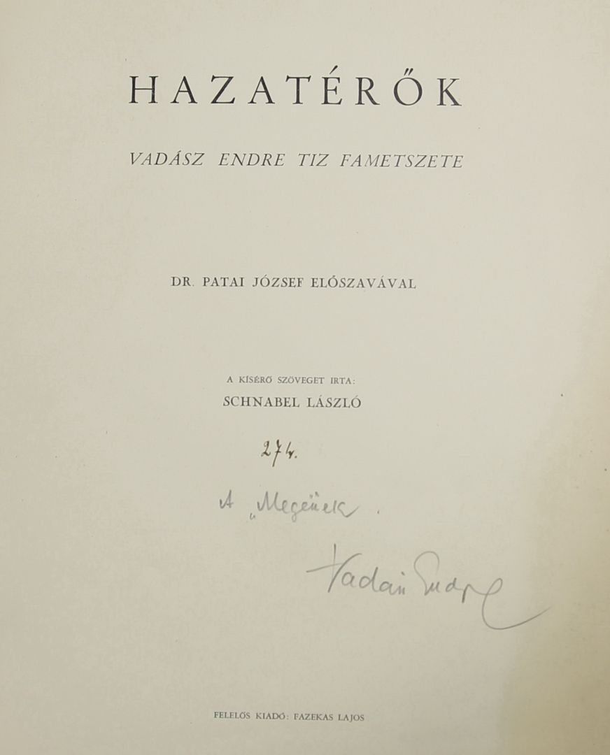 120. / Vadász Endre (1901 - 1944) / 10 fametszet a "Hazatérők" mappában, 1937 Fazekas Lajos kiadás (szöveg benne: Scnhábel László), ajánlás "A Megének