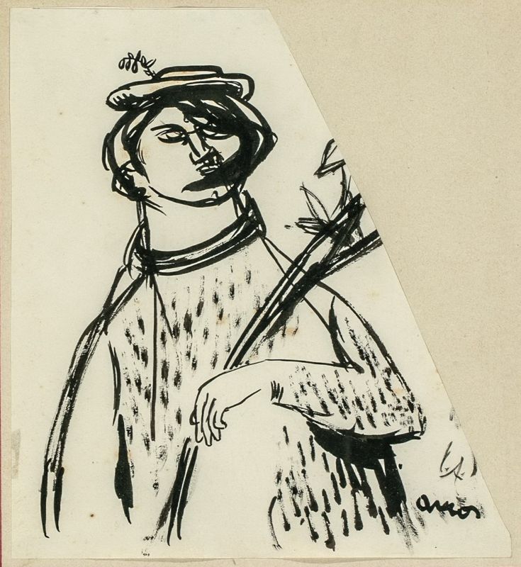 4. / Ámos (Ungár) Imre (1907 - 1944) / Önarckép ággal