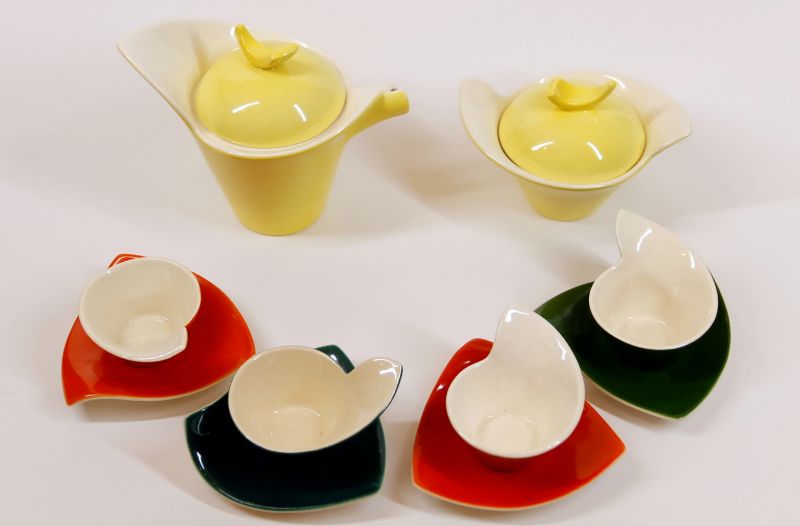 159. / Kávéskészlet () / Négyszemélyes készlet: kiöntő, cukortartó, 4 csésze (12 db)