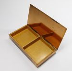 igényes, kézi fűzéssel összefogott lapok, díszdoboznak nyomott selyem a borítása , lásd részletfotót