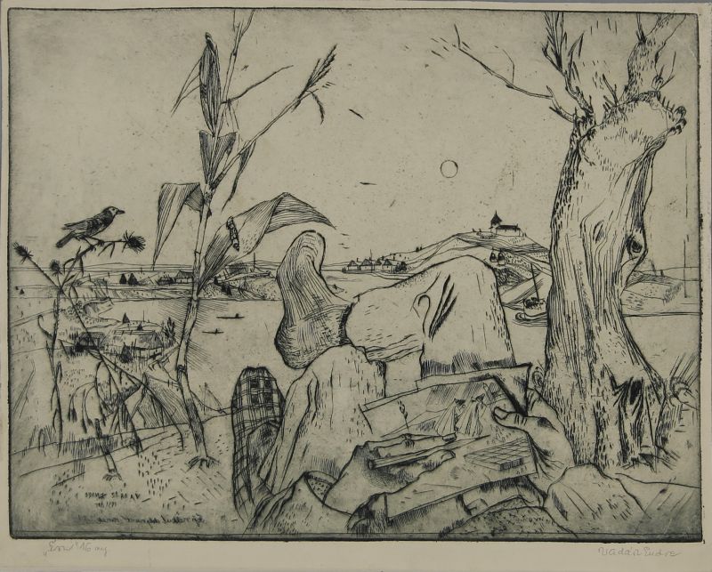 színes szitanyomat, szignált, sérült / 34,5 x 29,2
