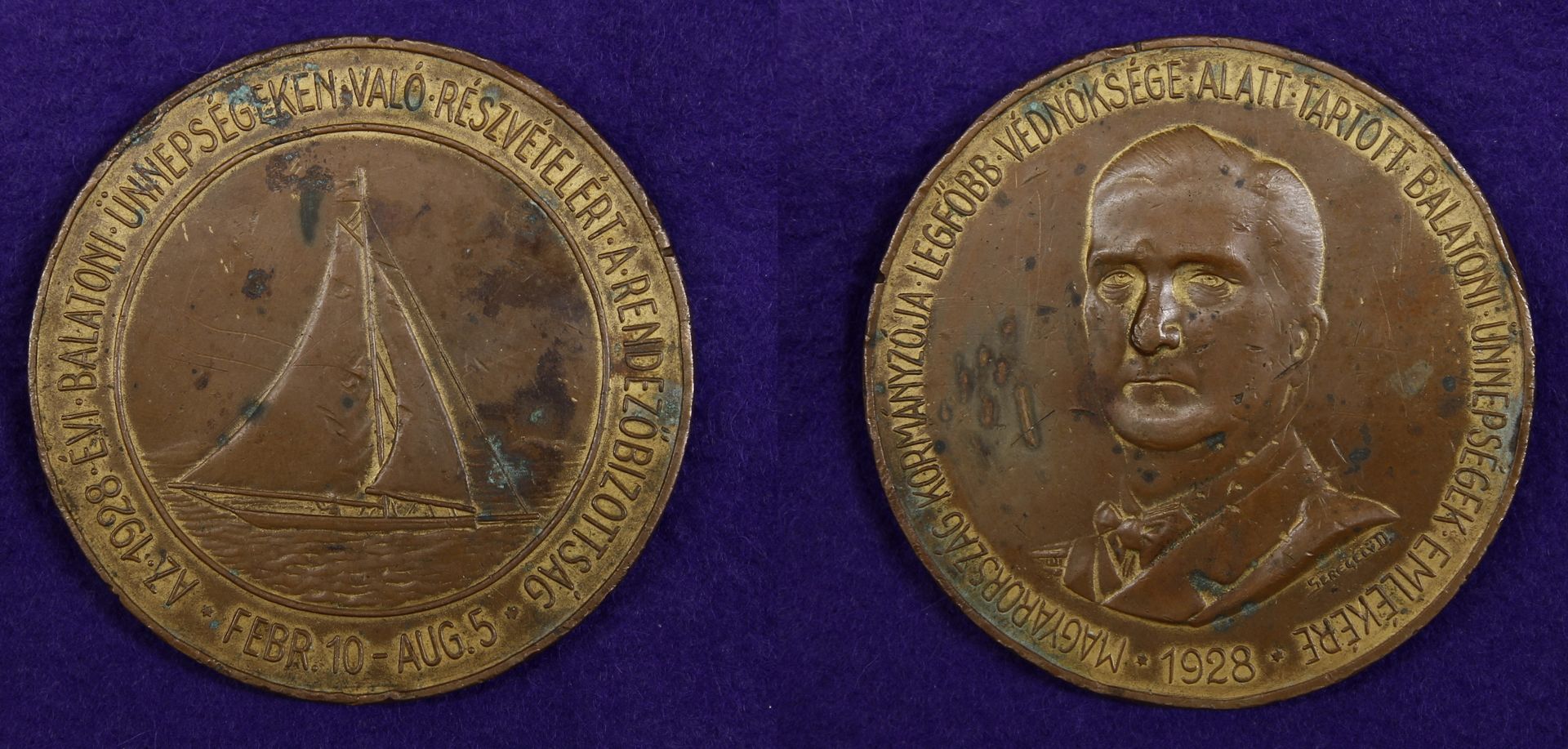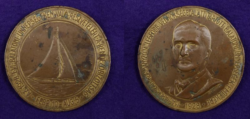 162. / Seregély Dezső (1867 - 1948) / Balatoni ünnepségek, 1928 - részvételi érem, Horthy arcképpel