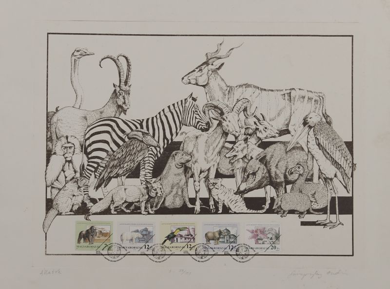 46. / Szunyoghy András (1946) / Állatok rézkarcon és 5 bélyegen